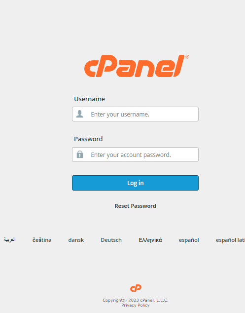 After entering your credentials, click the "Log in" button. If you've entered the correct information, you'll be granted access to your cPanel dashboard.